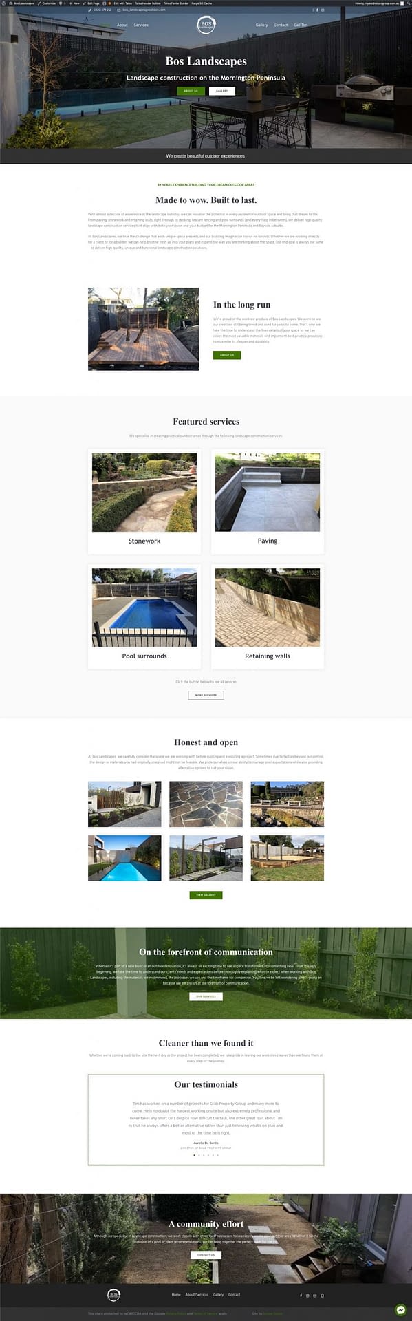 Built to wow, made to last. The website follows the same motto of Bos Landscapes. Encompassing a clean modern design, whilst utilising a powerful CMS.