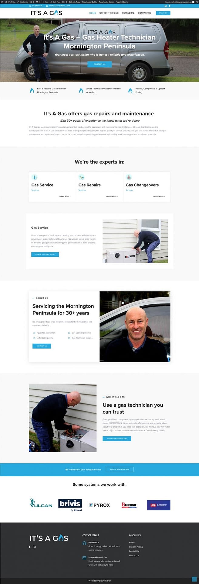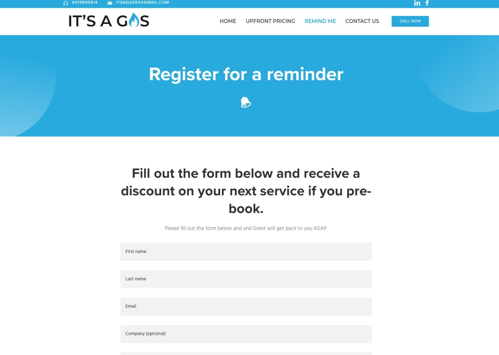 We were commissioned to build a single page website for a gas technician located on the Mornington Peninsula. The website included a built in notification system that was built using MailChimp. A customer could easily sign up for a reminder with their next gas service.