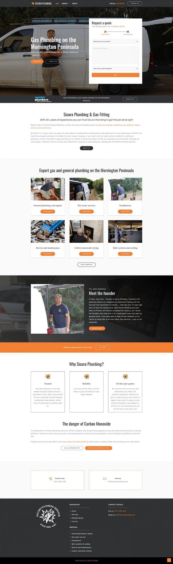 Sicuro Plumbing wanted a simple, well optimised website that would be really fast to load and enable users of all ages to fill out a form or simply find Gary’s number. The idea was to provide Gary’s customers and prospects a very clear path from showing interest to making contact.